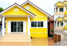 บ้านทรงจั่วโทนสีเหลืองเด่น 2ห้องนอน 1ห้องน้ำ พื้นที่ใช้สอย 63 ตารางเมตร