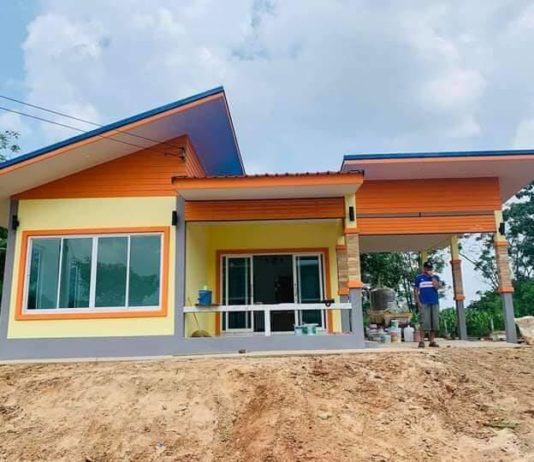แบบบ้านสไตล์โมเดิร์น ลักษณะบ้านแบบหลังคาเพิงหมาแหงน ตัวบ้านเทพื้นสูงขึ้นเล็กน้อยประมาณ 30 ซม หน้าบ้านทำเป็นพื้นที่ระเบียง ตัวบ้านทาด้วยโทนสีเท่าและด้านหน้าตกแต่งด้วยหินกาบเพิ่มความสวยงาม ฟังก์ชั้นภายในประกอบด้วย 2 ห้องนอน / 1 ห้องน้ำ / 1 ห้องครัว และห้องโถ่งรับแขกห้องนั่งเล่นพักผ่อน งบประมาณก่อสร้างประมาณ 7-8 แสนบาท ขอบคุณรูปภาพเจ้่าของบ้านคุณ Apichat Somsri ติดตามชมกันเลยครับ