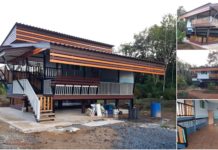 สวัสดีคุณผู้อ่านที่น่ารักทุกท่าน และผู้กำลังมีโครงการจะสร้างบ้าน หรือกำลังมองหาแบบบ้าน ไอเดียสำหรับสร้างบ้านของตัวเองในอนาคต กลับมาพบกับเราเว็บไซต์ thailetgo.com เรามีแบบบ้านสวยงบน้อยและไอเดียสร้างบ้านงบประหยัดมาให้รับชมกันทุกวัน สำหรับบ้านที่นำมาฝากวันนี้เป็นไอเดียการสร้างบ้านไม้ในสวน ยกพื้นสูงมีระเบียงสำหรับพักผ่อนกว้างขวาง ติดตามชมกันต่อเลยครับ ลักษณะบ้านหลังนี้เป็นบ้านพักอาศัยแบบชั้นเดียว ตัวบ้านยกพื้นสูงประมาณ 1.5 เมตร โครงสร้างตัวบ้านเป็นเหล็กใช้เสาปูนสำเร็จ พื้นบ้านเล่นระดับเป็นสองชั้นแบ่งเป็นพื้นที่ระเบียงพักผ่อนครัวและห้องน้ำ และอีกส่วนจะเป็นพื้นที่โถงพัก่อนและห้องนอน หลังคามุงด้วยกระเบื้องลอนคู่ ชั้นช่างมีพื้นที่ปล่อยโล่งสำหรับเป็นพื้นที่พักผ่อนด้วย รอบบ้านเทด้วยพื้นคอนกรีต บ้านหลังนี้งบก่อสร้างประมาณ 6 แสนกว่าบาท รูปภาพภายในบ้าน ขอบคุณข้อเจ้าของบ้านคุณ Kowit Duangjai บ้านสวยเพิ่มเติมได้ที่...