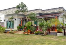 สวัสดีทุกท่านผู้ชื่นชอบแบบบ้าน หรือกำลังมองหาไอเดียสร้างบ้านของตัวเองกันอยู่ วันนี้เรามีไอเดียการสร้างบ้านโมเดิร์นสวยด้วยงบไม่สุงมาฝากัน ลักษณะบ้านเป็นบ้านชั้นเดียว หลังคาแบบเพิงแหงนสไตล์โมเดิร์นเรียบง่าย ตัวบ้านรูปแบบคล้ายร้านกาแฟ หน้าบ้านมีระเบียงพร้อมม้านั่งเล่นพักผ่อน จัดแต่งสวนรื่นรื่นน่าอยู่มาก ขอบคุณข้อมูลและภาพเจ้าของบ้านคุณ ศิรวิทย์ ยิว ติดตามชมกันเลยครับ
