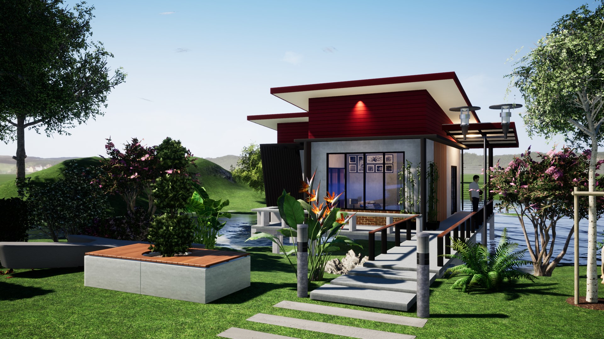 สวัสดีคุณผู้อ่านที่น่ารักทุกท่าน และผู้กำลังมีโครงการจะสร้างบ้าน หรือกำลังมองหาแบบบ้าน ไอเดียสำหรับสร้างบ้านของตัวเองในอนาคต กลับมาพบกับเราเว็บไซต์ thailetgo.com เรามีแบบบ้านสวยงบน้อยและไอเดียสร้างบ้านงบประหยัดมาให้รับชมกันทุกวัน สำหรับบ้านที่นำมาฝากวันนี้ เป็นแบบบ้านแนวโมเดิร์นขนาดเล็กน่ารัก สร้างสร้างบริเวณริมสระน้ำ ชมกันต่อเลยครับ