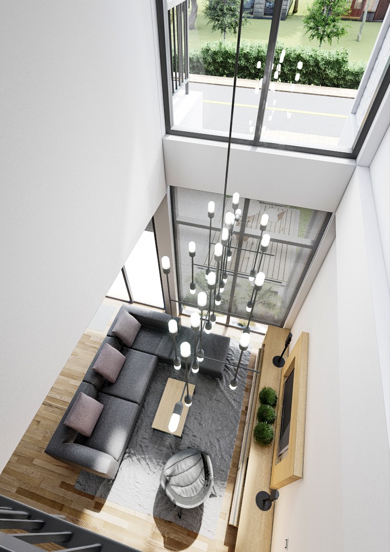 ส่วนของภายในบ้านห้องโถงโล่งกว้างเพดานแบบสูงทำให้โปร่งดโล่งสบายยิ่งขึ้้น การออกแบบจัดสรรพื้นที่ใช้สอยภายในครบพร้อมสำหรับความต้องการของครอบครัว ประกอบด้วย 2 ห้องนอน 3 ห้องน้ำ 1 ห้องรับแขก 1 ห้องครัว 1 ห้องรับประทานอาหาร พื้นที่ใช้สอย 90 ตรม.