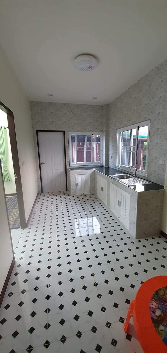 ส่วนของภายในบ้านห้องโถงกลางนั่งเล่นและรับแขกปูพื้นด้วยกระเบื้องลายหิน่อนผนังห้องโทนสีเหลืองอ่อนและฝ้าเพดานแบบหลุ่มรูปทรงสวยงามพร้อมติดไฟดาวน์ไลท์และโคมไฟประดับกลางห้องห้องครัวขนาดใหญ่โล่งกว้างปูพื้นด้วยกระเบื้องครัวแบบเคาน์เตอร์ปูนรูปทรงตัวแอลผนังหน้าเคาน์เตอร์ปูด้วยกระเบื้องแบบเต็ม ภายในบ้านหลังนี้ประกอบด้วย 2 ห้องนอน 1 ห้องน้ำ 1 ห้องครัว และห้องโถงกลางนั่งเล่นรับแขก งบก่อสร้าง 7.5 แสนบาท พิกัด อ.ท่าบ่อ จ.หนองคาย