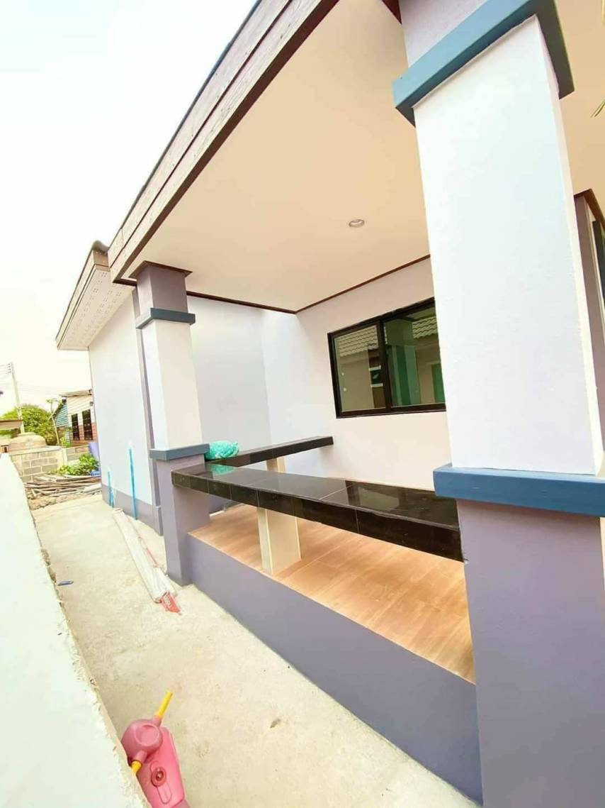 ลักษณะบ้านหลังนี้ออกแบบเป็นบ้านพักอาศัยแบบชั้นเดียวสไตล์โมเดิรืนรูปทรงตัวแอลขนาดเล็ก หลังคาแบบลาดเอียงซ้อนเล่นระดับเข้ากับรูปทรงตัวบ้านมุงด้วยกระเบื้องลอนคู่ ฐานตัวบ้านยกระดับพื้นประมาณ 60 เซนติเมตรบันไดสามขั้น ผนังภายนอกโทนสีขาวตัดกับสีม่วงอ่อน หน้าบ้านมีระเบียงมุงหลังคาปูพื้นด้วยกระเบื้องพร้อมทำม้านั่งเล่นพักผ่อนและรอบตัวบ้านเททางเดินด้วยพื้นคอนกรีตด้วย