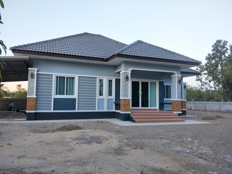 บ้านพักอาศัยชั้นเดียว ลักษณะบ้านออกแบบเป็นบ้านชั้นเดียว สไตล์คอมเทมโพรารี่หลังคาแบบทรงปั้นหยา มุงด้วยกระเบื้องทนทานแข็งแรง ตัวบ้านยกพื้นสูงขึ้นเล็กน้อย หน้าบ้านมีเฉลียงทำเป็นม้านั่งเล่นพักผ่อน ภายออกแบบครบพร้อมสำหรับครอบครัว สำหรับบ้านหลังนี้ผลงานออกแบบก่อสร้างโดย #ทีมงานสร้างฝันบ้านสวย ที่มา : ช่างอาคม สร้างฝัน บ้านสวย พิกัด อำเภอทรายมูล จังหวัดยโสธร ติดตามชมกันต่อเลยครับ