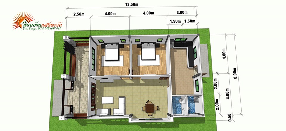 สำหรับรายละเอียดและฟังก์ชั้นภายใน แบบบ้านโมเดิร์นเพิงแหงนหลังนี้ ประกอบด้วย 2 ห้องนอน 2 ห้องน้ำ 1 ห้องครัว 1 รับแขก พื้นที่ใช้สอย 103ตารางเมตร งบก่อสร้าง 855,000 แบ่งเป็น ค่าช่าง 155,000 ค่าวัสดุ 700,000 (ข้อมูลจากลูกค้าของทาง แบบบ้านแสงตะวัน)