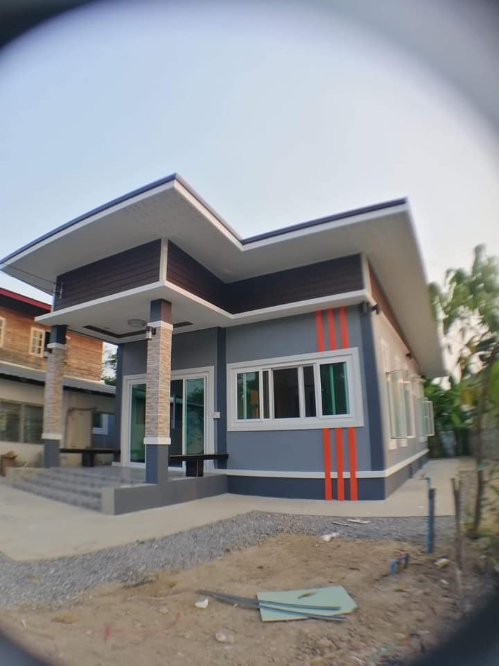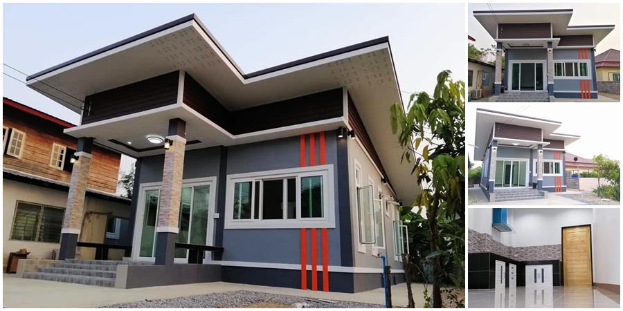 สวัสดีคุณผู้อ่านทุกท่าน และผู้สนใจแบบบ้านสวยหรือกำจะสร้างบ้านมองหาไอเดียเพื่อสร้างบ้าน วันนี้ทางเว็บเราก็มีไอเดียสร้างบ้านงบประหยัดมาฝากกันอีกหลัง สำหรับบ้านหลังนี้การออกแบบเป็นบ้านชั้นเดียวสไตล์โมเดิร์น หลังคาแบบเพิงแหงนแนวเรียบง่าย ตัวบ้านยกระดับพื้นสูงขึ้นเล็กน้อย หน้าบ้านมีระเบียงพร้อมทำม้านั่งเล่นพักผ่อน ผนังภายในโทนสีเทาตัดส้มของคิ้วประตูและหน้าต่างแซมด้วยสีส้ม เสาหน้าบ้านตกแต่งด้วยหินทรายเพิ่มความสวยงาม สำหรับบ้านหลังนี้เป็นบ้านของคุณ Adisak Indee สมาชิกกลุ่ม ดูไอเดียบ้าน นำมาแชร์ไว้เป็นแนวทางสำหรับสมาชิก ติดตามชมกันต่อเลยครับ