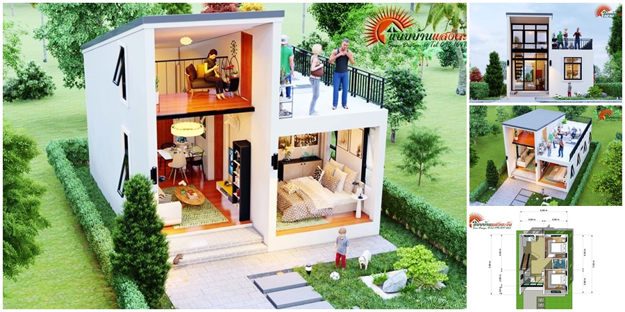 สำหรับรายละเอียดและฟังก์ชั้นภายใน แบบบ้านโมเดิร์นมีชั้นลอยพร้อมระเบียงดาดฟ้าหลังนี้ ถึงจะขนาเล็กแต่ก็อัดแน่นด้วยฟังก์ชั้นใช้งานครบพร้อมสำหรับครอบครัว ประกอบด้วย 2 ห้องนอน 1ห้องน้ำ 1 ห้องครัว 1 รับแขก+ชั้นลอย+ดาดฟ้า พื้นที่ใช้สอย 45 ตารางเมตร+พื้นที่ดาดฟ้า 23 ตร.ม. งบก่อสร้าง 5 – 7แสน ทั้งนี้ขึ้นอยู่กับวัสดุและเขตพื้นที่ก่อสร้าง