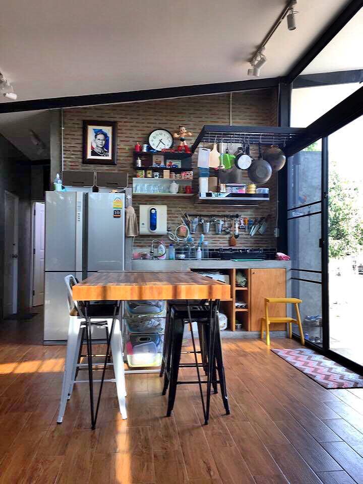 สำหรับรายละเอียดและฟังก์ชั้นภายใน แบบบ้านโมเดิร์นลอฟท์ขนาดเล็กอบอ่นหลังนี้ บรรยากาศตัวบ้านเต็มไปด้วยกลิ่นอายแบบร้านกาแฟ ภายในจัดตกแต่งบ้านได้น่าอยู่ พื้นทีใช้สอยครบพร้อมสำหรับครอบครัวประกอบด้วย 2 ห้องนอน 2 ห้องน้ำ พื้นทีครัว รับประทานอาหาร และพื้นทีพักผ่อน ด้วยงบประมาณก่อสร้าสง 6 แสนบาท (สร้างปี 2017)