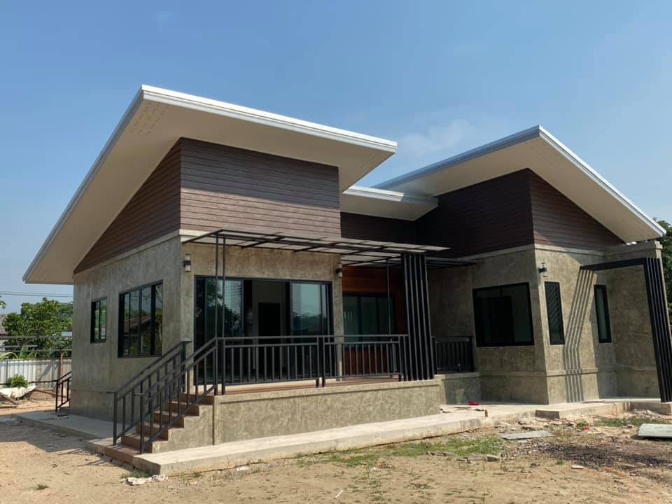 สวัสดีคุณผู้อ่านทุกท่าน และผู้กำลังจะสร้างบ้านมองหาแบบบ้านสวย หรือไอเดียสำหรับสร้างบ้านในฝันของตัวเองกันอยู่ ฝากติดตามเพจและเว็บของเราไว้ด้วยนะครับ เรามีบ้านสวยหลายแนวมาฝากให้ชมกันทุกวัน และวันนี้เราก็มีบ้านสวยทันสมัยมาให้ชมกันอีกหลัง ลักษณะบ้านออกแบบเป็นบ้านชั้นเดียย สไตล์โมเดิร์นหลังคาแบบลาดเอียบเล่นระดับสวยงามลงตัวกับรูปทรงบ้า ตัวบ้านยกระดับพื้นสูงประมาณ 1 เมตร ผนังภายนอกแบบปูนเปือยแนวลอฟท์สวยงามทันสมัย บ้านหลังนี้ผลงานโดย Nick Civil พิกัด จ.เชียงราย ติดตามชมกันต่อเลยครับ